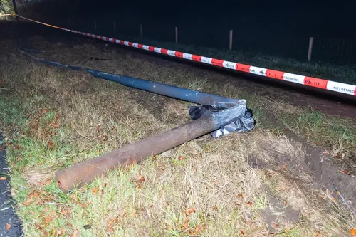 meerdere lantaarnpalen en belandde in de bosjes. Door de crash zorgde de