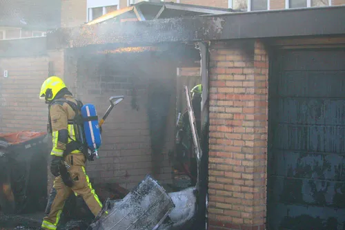 aankomst van de brandweer bleek de brand te woeden in een garagebox achter een