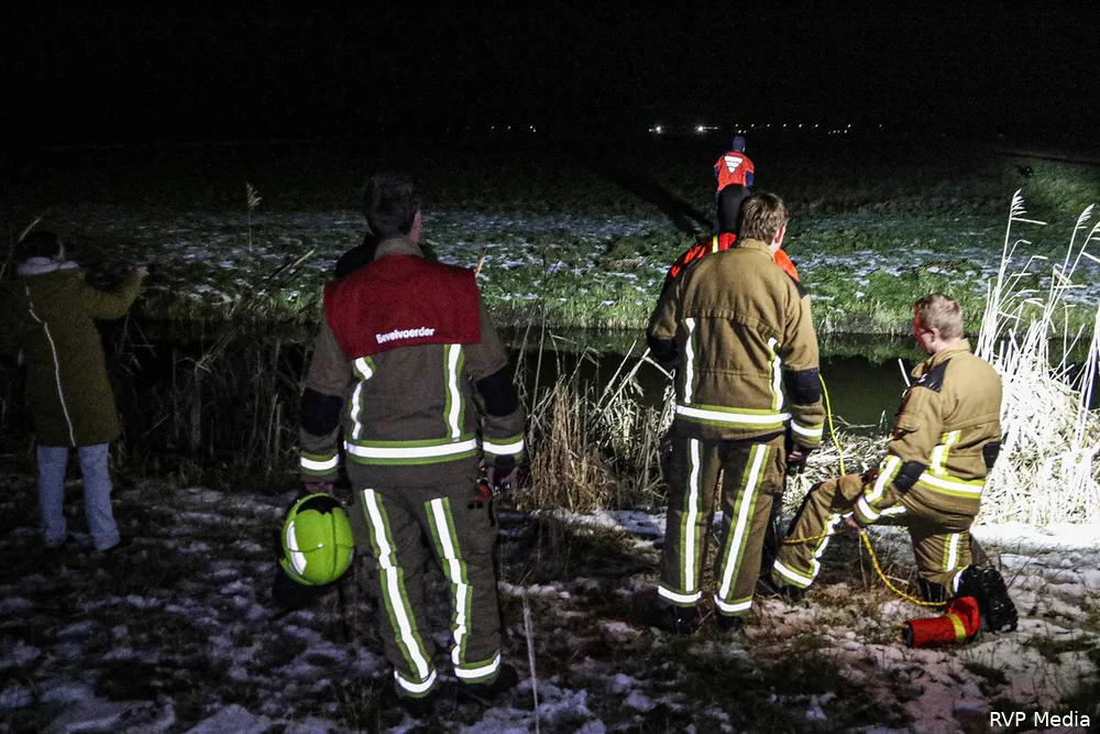 Tijdens de wandeling liet de eigenaar zijn hond kort los. Het dier besloot daarop spontaan een ijskoude sloot over te zwemmen en kwam terecht in een weiland aan de overzijde. Met de ervaring van het koude water besloot het diertje om geen tweede overtocht aan te gaan. Het baasje restte dan ok niets anders dan de hulpdiensten in te schakelen.