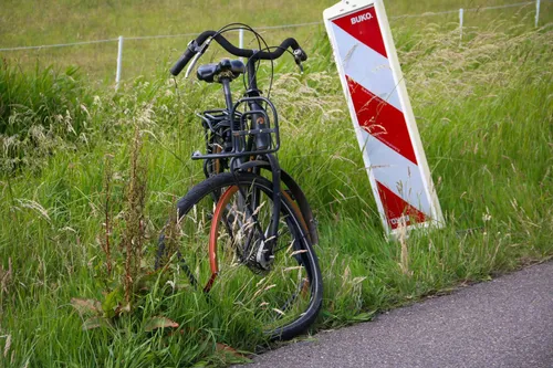 De fietser reed aan de linkerkant van het fietspad en kon,