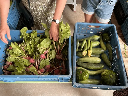 kwam er al rode, romaine en groene sla, bieten, courgettes, venkel,