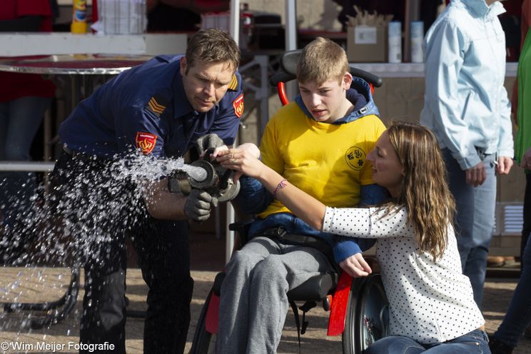 Maar daarna kon de dag dan ook echt lòs gaan. Rijden in oude politiewagens, in brandweerwagens, in een ME-wagen of met een motor met zijspan. Dieren verzorgen, brandjes blussen, brandweermannen van een plank spuiten waardoor ze in een bassin water vielen of foto’s laten maken terwijl je op een politiemotor zit. Ook kon men in de ambulance een geschminkte wond laten verzorgen of de paarden knuffelen van de ‘bereden politie’.