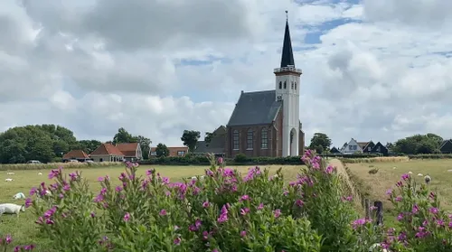 in De Koog. We mogen op het orgel van de kerk in Den Hoorn spelen, struinen