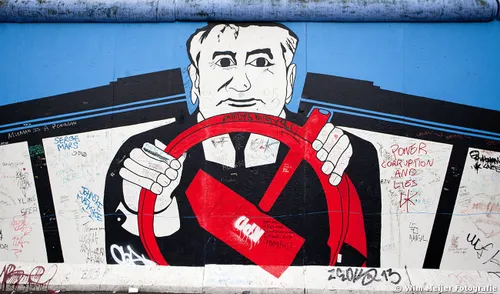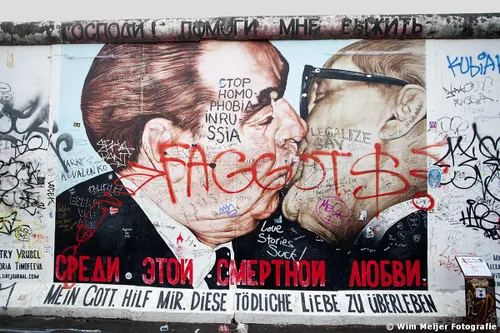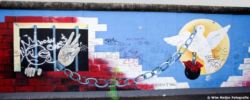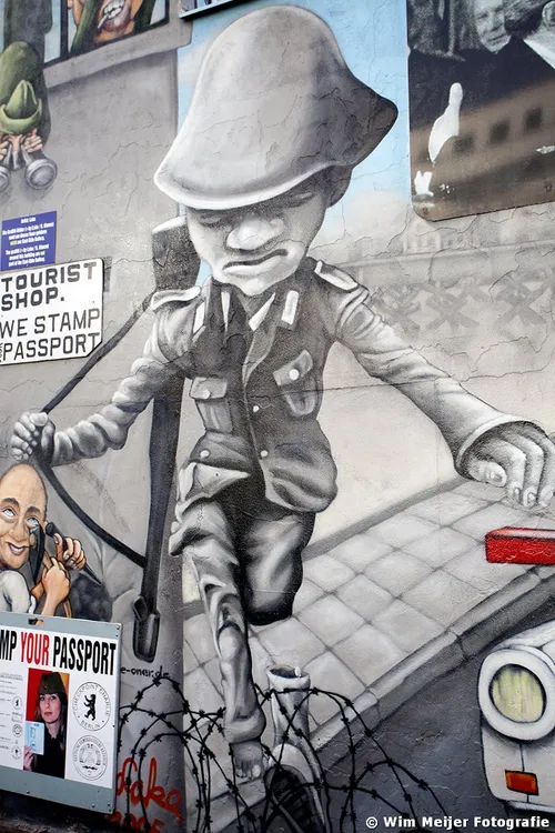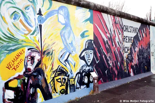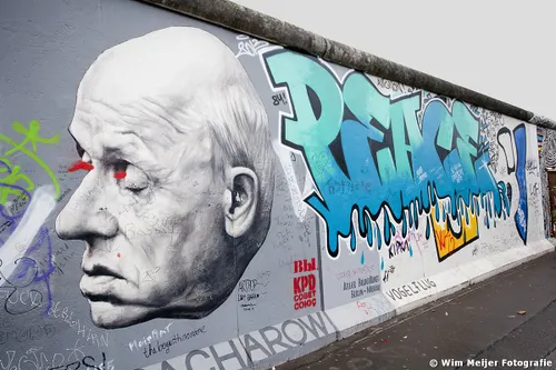 Hieronder een fotoserie van een deel van de Berlijnse Muur: de East Side Gallery , een stuk van de Berlijnse Muur met een lengte van 1.316 meter, in 1990 beschilderd door 118 kunstenaars uit 21 landen. De kunstenaars gaven in de schilderwerken hun visie op de politieke situatie in het Berlijn van 1989/1990. Inmiddels is de Side Gallery de grootste permanente openluchttentoonstelling ter wereld en is een verzoek ingediend om het op te nemen op de werelderfgoedlijst van UNESCO.