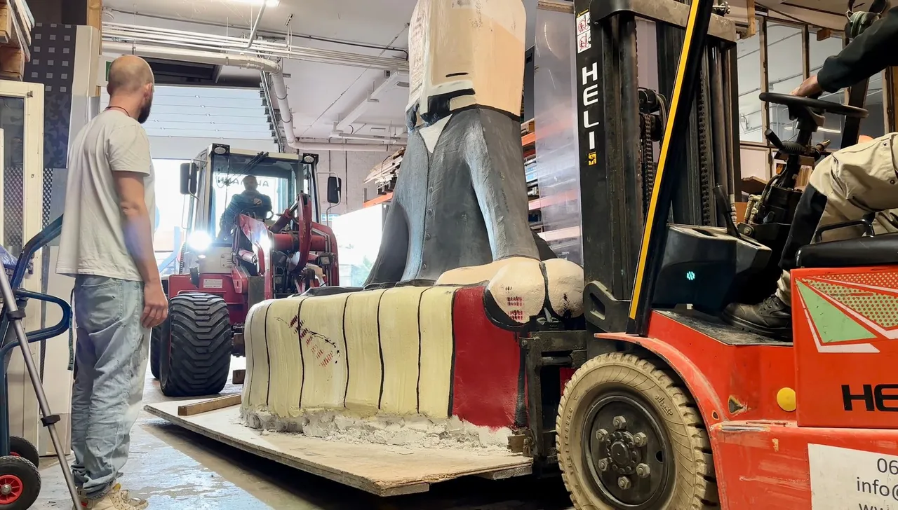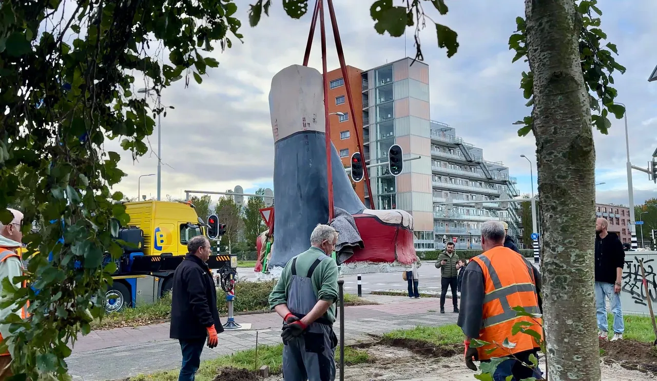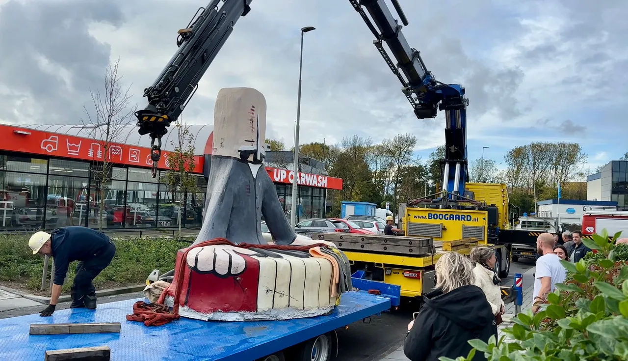 HEEMSKERK - In Heemskerk wordt op 8 november 2024 het achttiende kunstbankje in de serie van de Stichting Bankjesparade officieel in gebruik genomen. Vandaag werd de 'Kom je spelen bank', ontworpen door kunstenaar Marten Fisher, van de Broedmachine in Beverwijk naar zijn plek op de hoek van de Tolweg en de Duitslandlaan in Heemskerk getransporteerd.