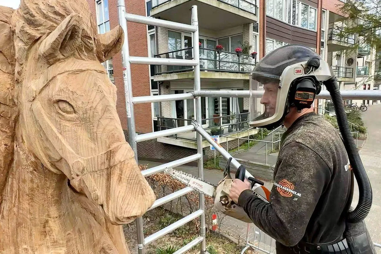 HEEMSKERK - De grote boomstronk aan de Marquettelaan in Heemskerk kreeg van boomzaagkunstenaar Jeroen Boersma een make-over! Hij toverde de laatste oude iep in drie dagen om tot een prachtig kunstwerk dat tevens een eerbetoon is aan de Heemskerkse harddraverij die in 2025 het honderdjarig bestaan viert!