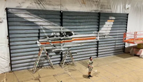 Het Beverwijkse kunstcollectief is gespecialiseerd en graffiti en muurschilderingen. Zij hebben zich uit mogen leven op de 22500 vierkante meter, zijnde de oppervlakte van het windscherm, en zijn erin geslaagd om de van nature kille industriële wand om te vormen tot een soort van IJmondse versie van de East Side Gallery*) met voor de omgeving kenmerkende afbeeldingen van onder andere meeuwen, een surfer, een reddingsboot en de vuurtoren op de Noordpier.
